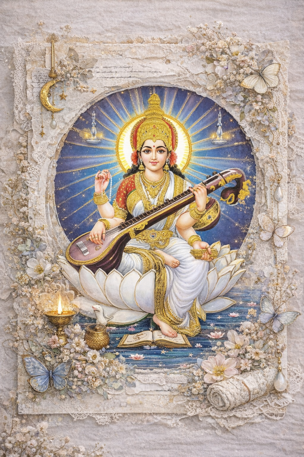 Saraswati represents wisdom, creativity, and the gentle power of renewal—like a river that restores through steady, harmonious flow.